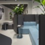 The perimeter is made with an HPL structure that forms an elegant and original decorative frame. To complete the sound-absorbing screens, there is a collection of worktops, soft poufs and armchairs with the possibility of USB connections for recharging any type of device. The result is very sophisticated and high-design environment, which plays on a variety of rich fabrics proposed in the catalogue in a fresh and contemporary range of colours. The collection meets the current needs of compositional flexibility, privacy and acoustic comfort, not only in the workplace environment.