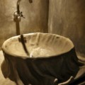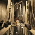 Repeated experimentation of Kora cloth (waste cloth) finished with a layer of ferrocement and then grey oxide, with further waxing and polishing led to the making of the CLOTHCRETE partitions that were only an inch thick but still retained all the undulations and beautiful folds of falling drapes. The end product is an eye-teasing array of tousled drapes tumbling down to become organic seats for the diners. This idea is further personalised in many other details such as the washbasin.