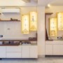 The ceiling provides a rational segregation to both the areas. The tranquil yet glistening scheme incorporated in the living area paints a picture of order and uniformity. The seating in the living room is more on the minimal lines with an influx of subtle modernity. An urbane wall curated with soft panels serves as a focal facet of this sphere while highlighting the finesse of Mahatma Buddha. The wainscoting done here accentuates the tellurian interiors. The kitchen is pragmatically designed in the south-east direction next to the main entry in order to avoid pests and enjoy the morning sun. Articulated to illustrate a masterful spectacle, the staircase fabricated in stainless steel with stone treads was planned for better communication and ease of kids.