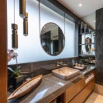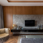 The large chandeliers grooming from the dual heightened ceiling create a dramatic affair to the muted shades. “Chandeliers are marvels of drop-dead showiness, the solitaire of any bungalow;” mentions the designers. Seamless to one’s eye the exclusivity of the home is in all glory of the modern ancient world and present-day interiors.