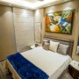 One of the bedrooms, in this 4 bedroom apartment has been converted into a ‘Den’ for friends and family as an entertainment room. The Den is equipped with a little something for each member of the family. There is a TV for movie nights, an extensive book collection for some reading ‘me’ time, and a fully stocked bar and snack cabinet to entertain guests. Each bedroom in the apartment is given a unique individuality with different lighting, finishes and mood, however still keeping in mind the overall muted and classic colour palette of the apartment.