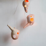 You See a Sheep is a selected concept lighting range of luxury lighting collection featuring luxury light fixtures that uses hand-built ceramic shells to house the light source and steel suspension cable to make them appear to be floating in space. A mysterious warm glow is revealed through the holes against the interior’s dry paper-like surface.